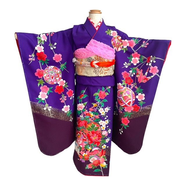 既製品の袷の着物です。 大胆な薔薇と蝶の中振袖です。同柄・色違いの4パターン、かなり趣が変わります。 袋帯を変わり結びにして合わせても袴を合わせても華やかになります。 セット売りではありません。帯や襦袢、小物の販売はありません。中振袖ですので袖丈を合わせた長襦袢が必要です。 【素 材】ポリエステル100% 【サイズ】Lサイズ相当: 身丈約163cm × 裄約68cm × 袖丈約76cm *Lサイズのみです。他のサイズはありません。 コンパクトに畳んで発送します。 他サイトにも出品しているため他で完売になる場合があります。 #レディース #着物 #ポリエステル #小紋 #袷 #中振袖 #薔薇 #蝶