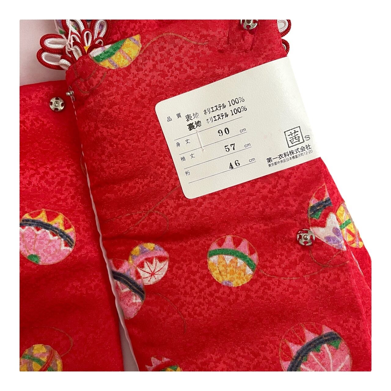 #七五三 #3歳児 #和装 #着物 #被布 #被布セット #手毬 #赤 #レトロ