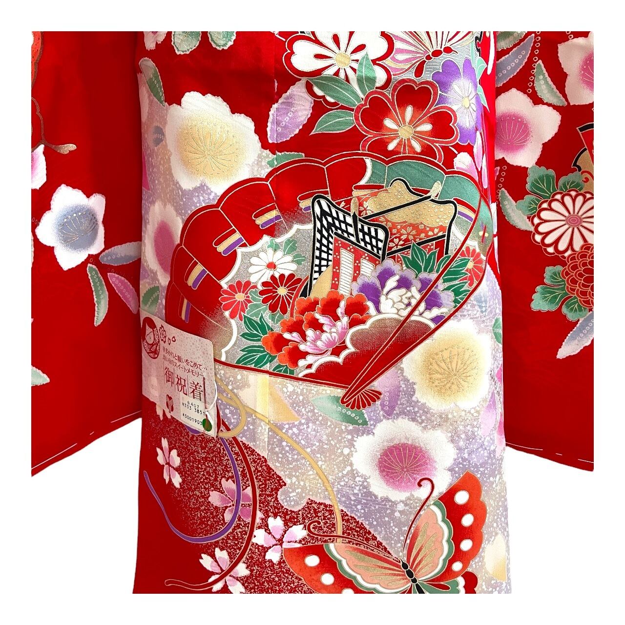 #アンティーク #七五三 #7歳 #着物 #和装 #古典柄 #扇 #蝶々 #赤