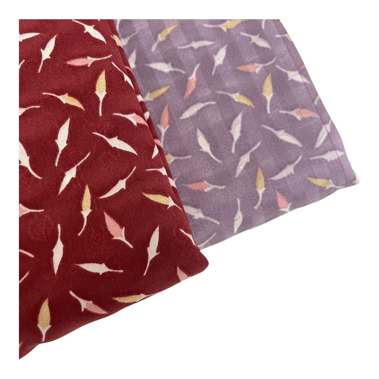 細かな唐辛子模様、サイズはMのみ、色は臙脂と藤色からお選び下さい。
