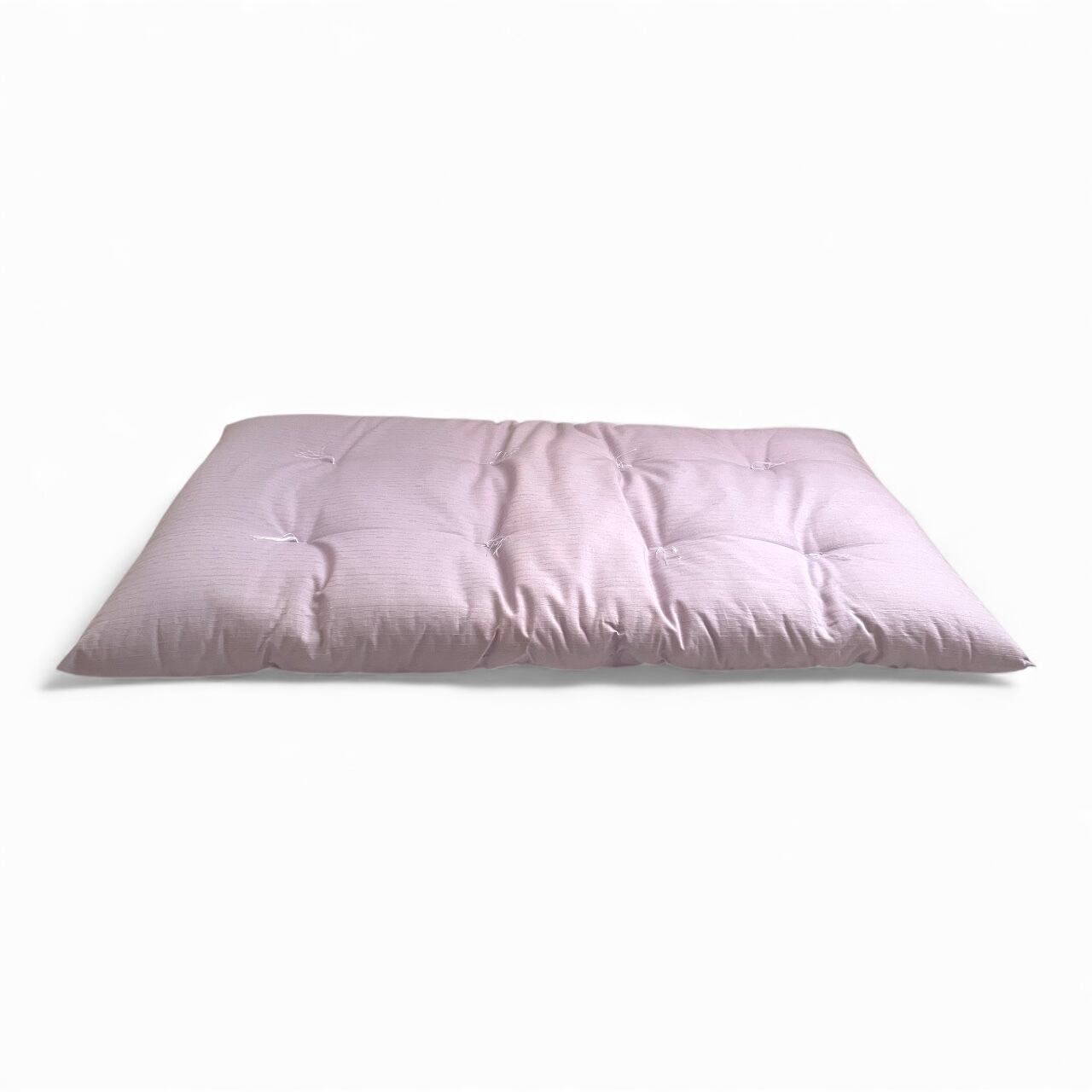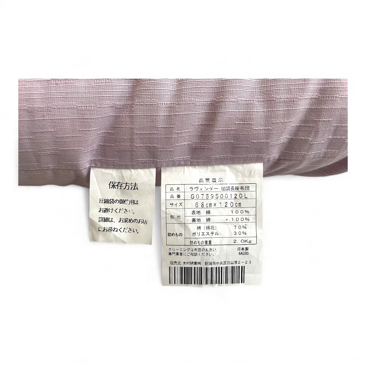 既製品の長座布団です。綿の割合が多いので、ポリエステル綿だけの物と違い、滑らず落ち着いて座っていられます。