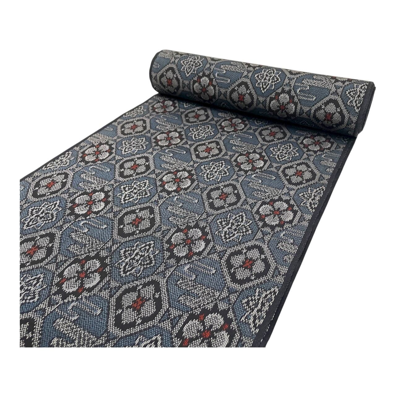 綺麗な青色にポイントの赤が効いている中柄の反物です。
