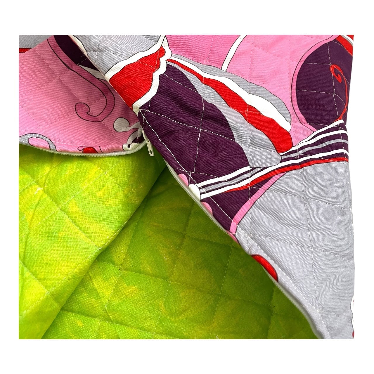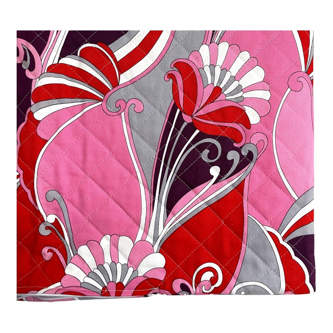 ピンクとパープルの大胆な花柄、キルティングで生地もしっかりしています。好みの分かれる柄ですが、お部屋のポイントにもなるようなカバーです。