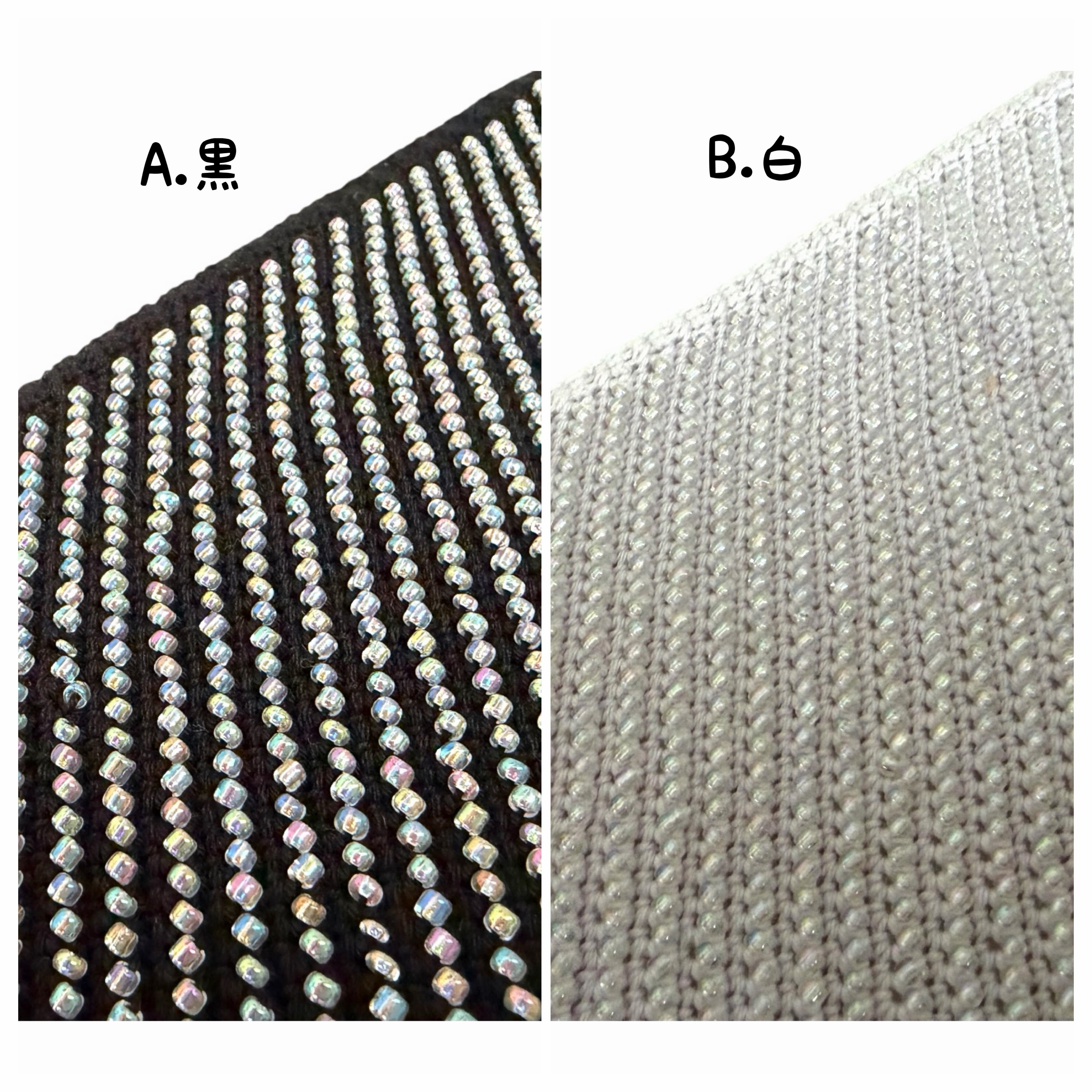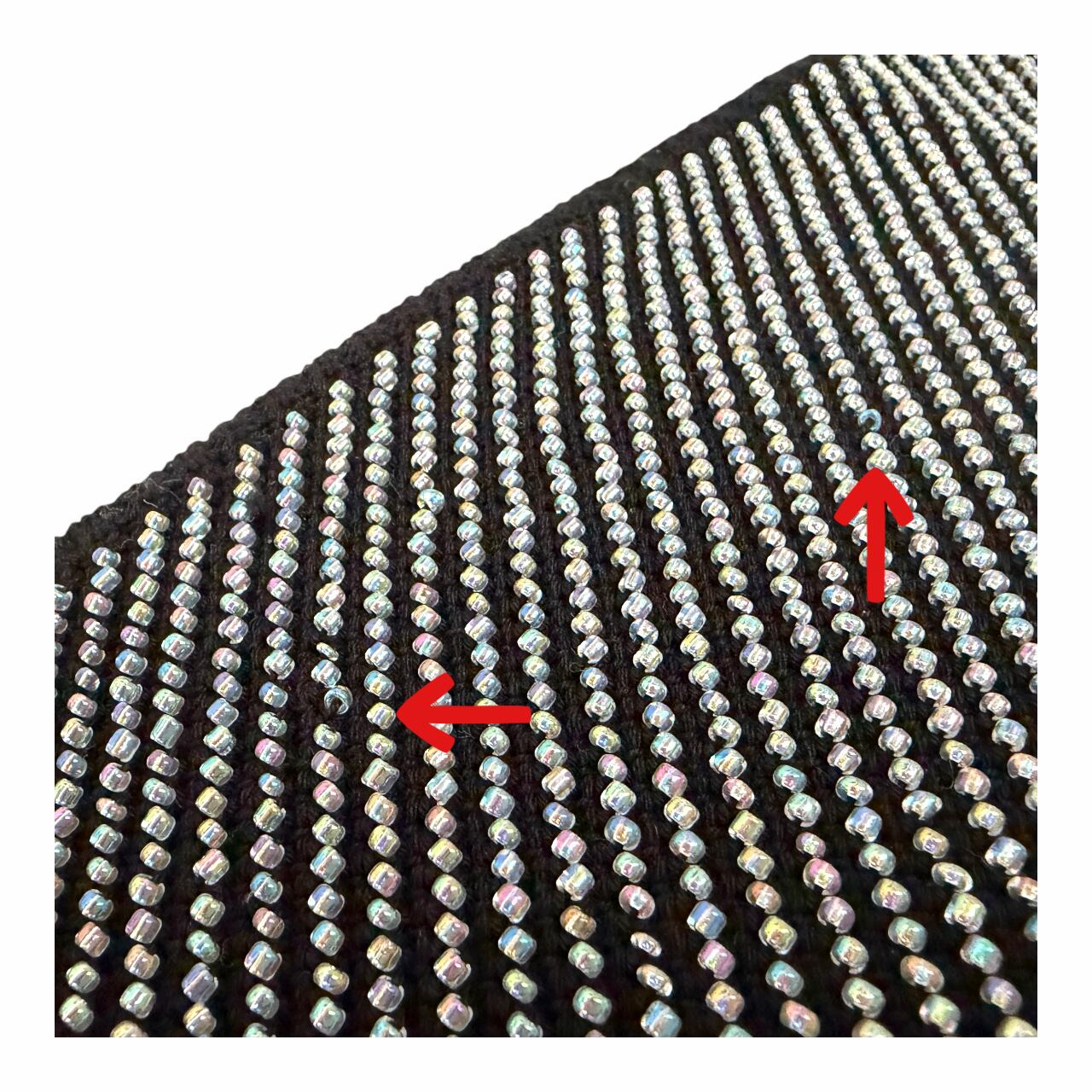 ビーズのサイズに多少の大小があるため、隙間のある箇所があります。特に黒地の場合(写真7枚目)は目立ちますが、表に出ない場所に調節を取ると良いです。