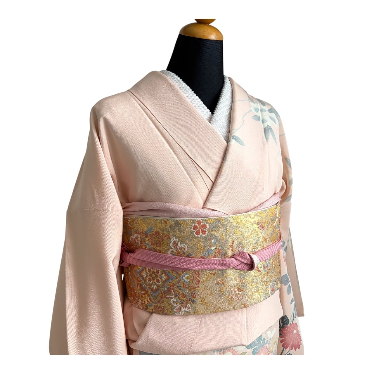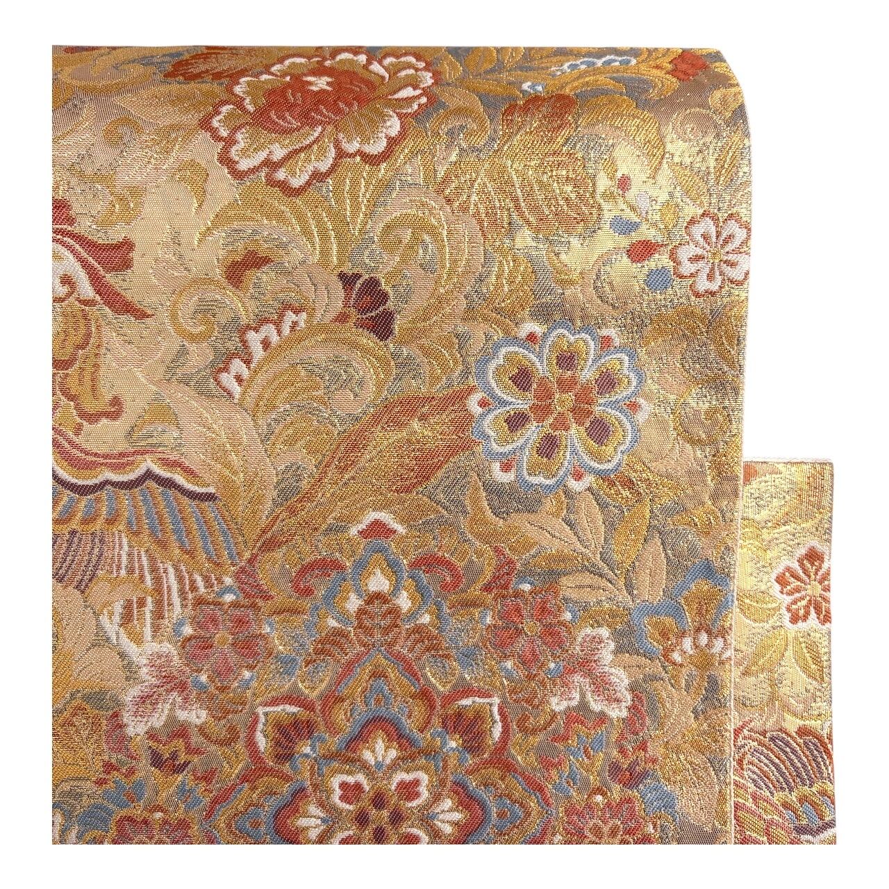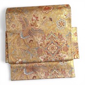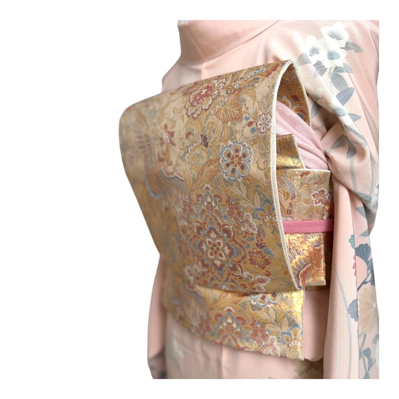 金糸の鳳凰や花紋様で一杯の華やかな帯です。留袖、訪問着・色無地など格式のある席に着用頂けます。