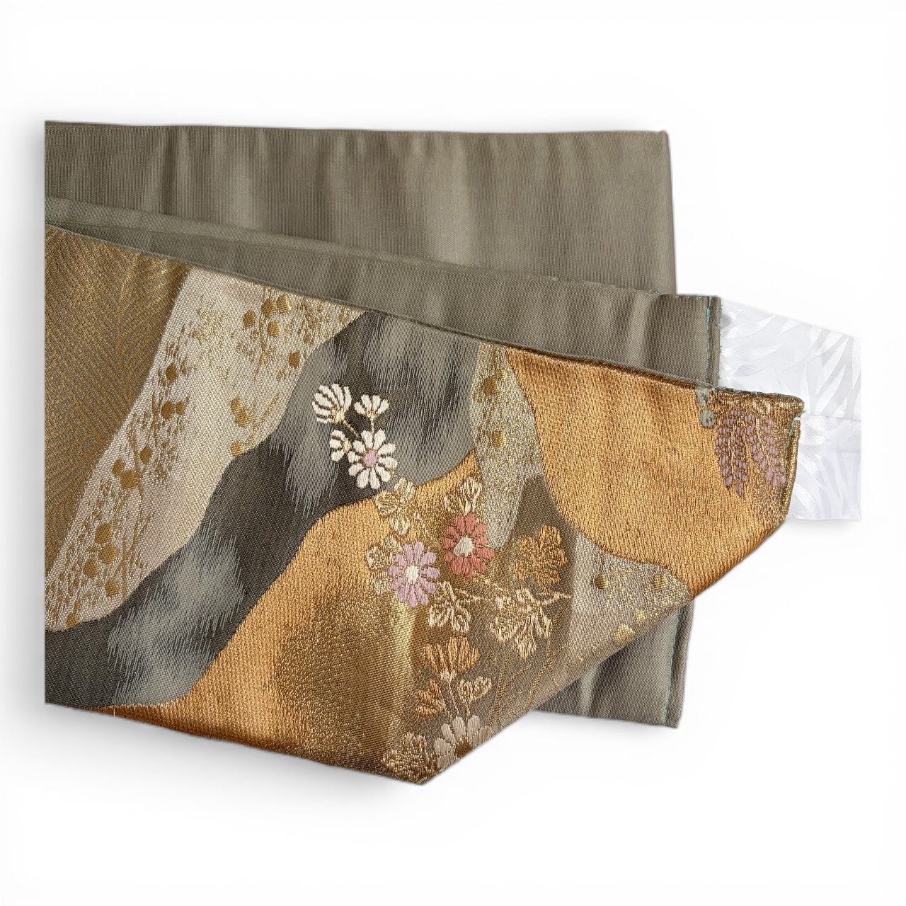 一本の袋帯をお太鼓部分と胴回り部分に切り離して作っています。簡単に着付けて気軽にお出掛けできるように作りました。